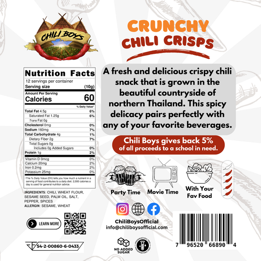 Chili Boys Spicy Crunchy Chili Crisps with Sesame Seeds | Crispy Fried Chili Snack and Food Topper | Vegan | Gourmet Savory Pepper Chips | Ready to Eat | Resealable Bag | 120g